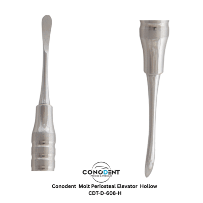 ₹1,500.00The CONODENT Molt Periosteal Elevator with Hollow Handle (CDT-D-608-H) is a premium surgical instrument designed for the effortless reflection and retraction of mucoperiosteal flaps. By combining the classic, trusted Molt tip geometry with an advanced lightweight handle, this instrument provides clinicians with the perfect balance of strength, maneuverability, and ergonomic comfort. -