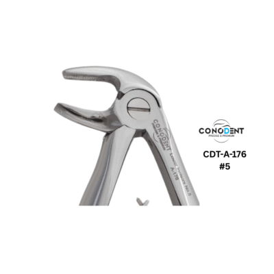 The Conodent Klein Figure 5 Extraction Forceps are specifically engineered for the mandibular (lower) anterior region of pediatric patients. Designed to facilitate the removal of primary lower incisors and roots, this instrument features a sharp, 90-degree beak angle and a compact frame, providing the clinician with the perfect line of sight and leverage for small-scale extractions.