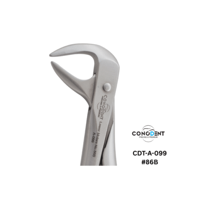 The Conodent Figure 86B "Cowhorn" Forceps combine traditional English Pattern precision with a modern anatomical handle design. Specifically engineered to engage the bifurcation of mandibular molars, this instrument uses a specialized wedging action to elevate teeth efficiently while providing the clinician with superior ergonomic comfort.